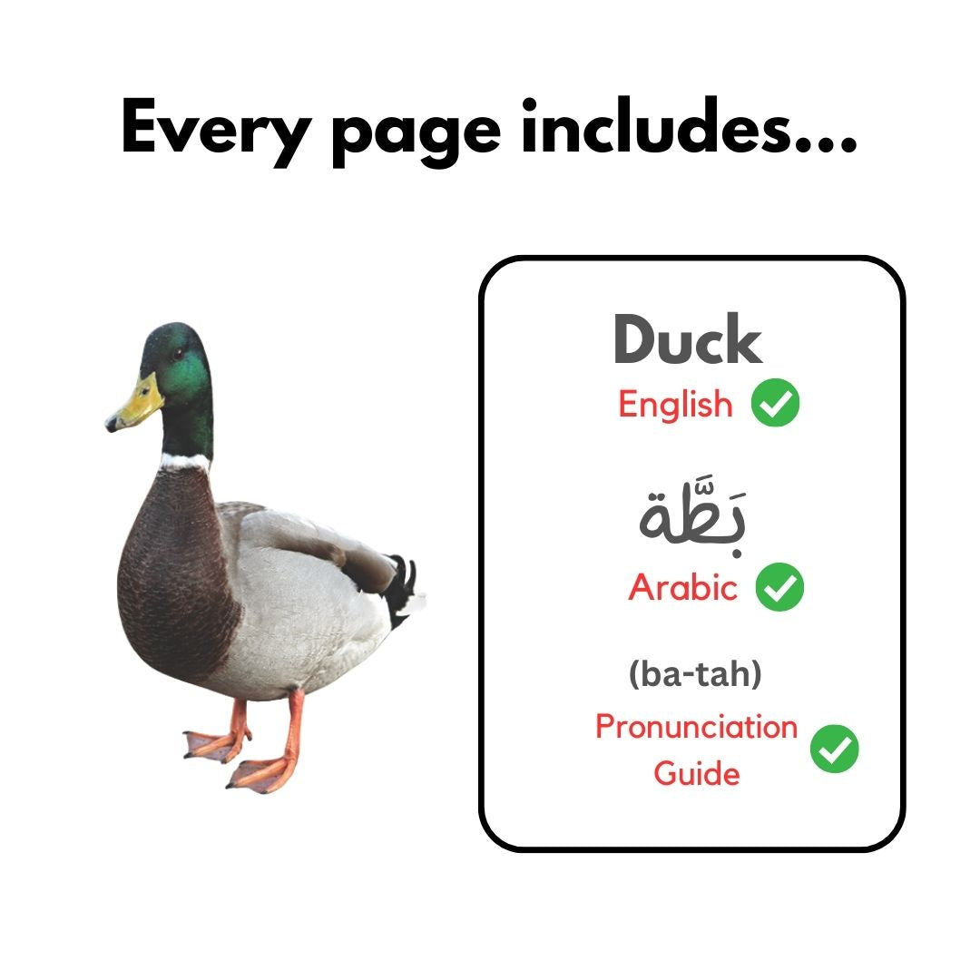 This adorable set of children’s bilingual books is perfect for tiny tots aged 0-3 years and their families who want to learn Arabic. Babies love real photos because they can recognize and connect with the world around them—which is why our books are packed with bright and beautiful photographs that are sure to engage your child’s senses!