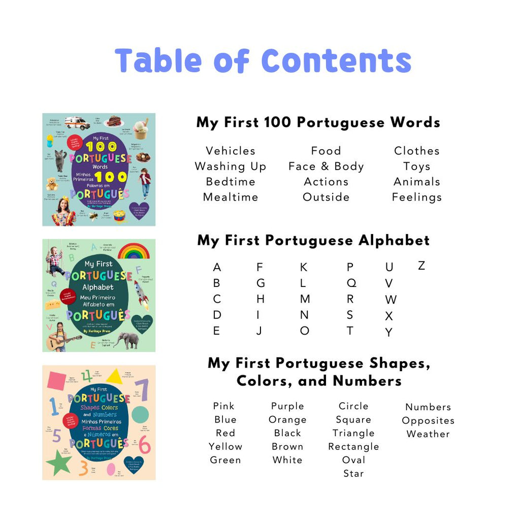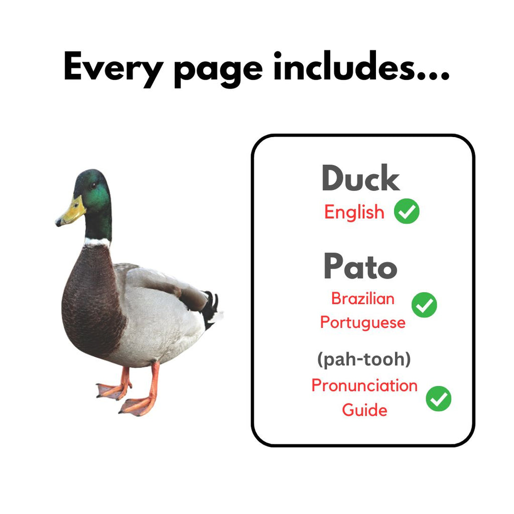 Each book in the series is written in both English and Brazilian Portuguese. Every word includes phonetic spelling (romanization) to help with pronunciation, making it easier for parents to teach their children the Portuguese language from an early age.